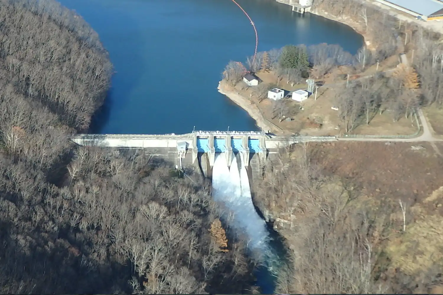 北海道本別町の美里別川に1955年完成した重力式コンクリートダム。堤高34m・総貯水容量約1741万m3で、ラジアルゲート4門を備えています。貯水した水は下流の足寄発電所(出力約4.2万kW)に送られ、発電に利用されています。