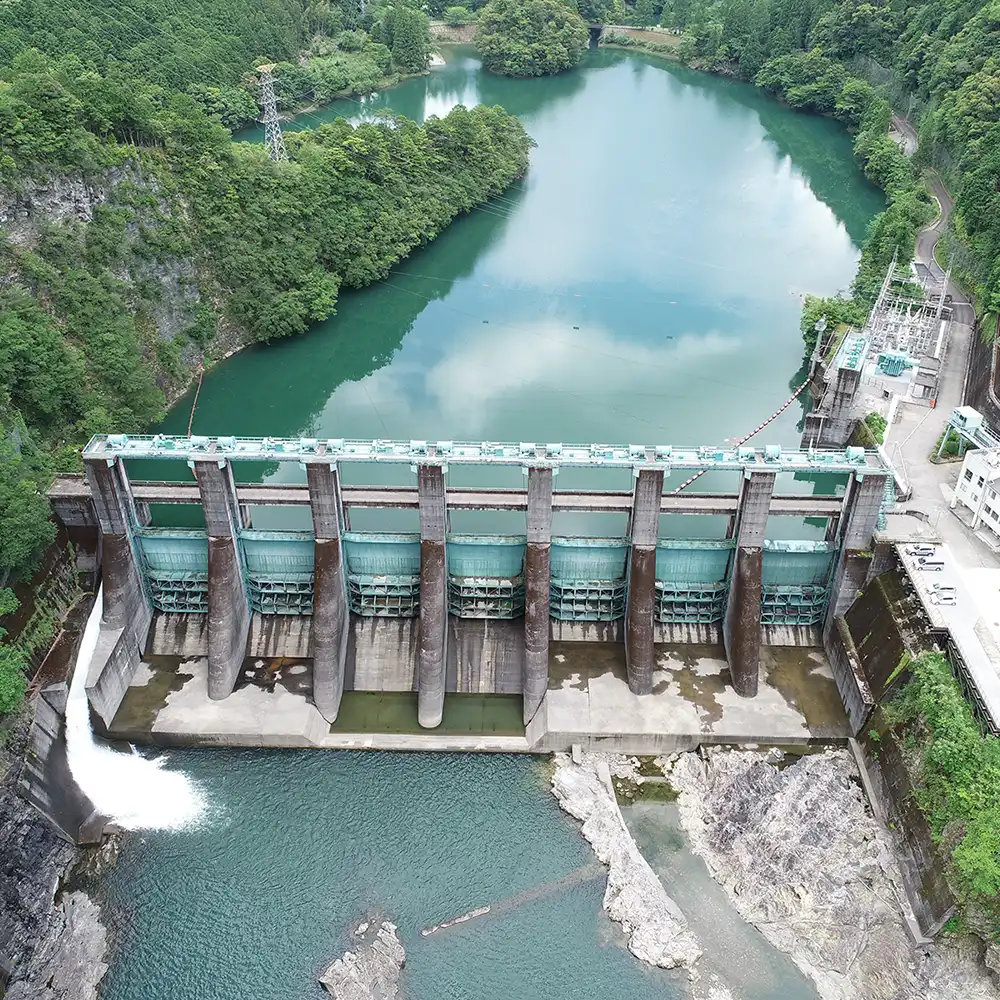 三重県熊野市・和歌山県北山村の北山川に1965年完成した重力式コンクリートダムです。堤高34m・総貯水容量約970万m3で、小森発電所(最大出力約3.0万kW)に水が送られ発電します。下流には南紀熊野ジオパーク北山峡があります。