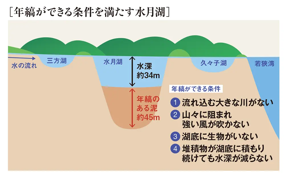 だから、地質学的、考古学的に価値が高いのです。ただし、どこの湖にも水月湖のような年縞があるわけではない。奇跡的と言われるのは、それに適う条件がそろっているからです」