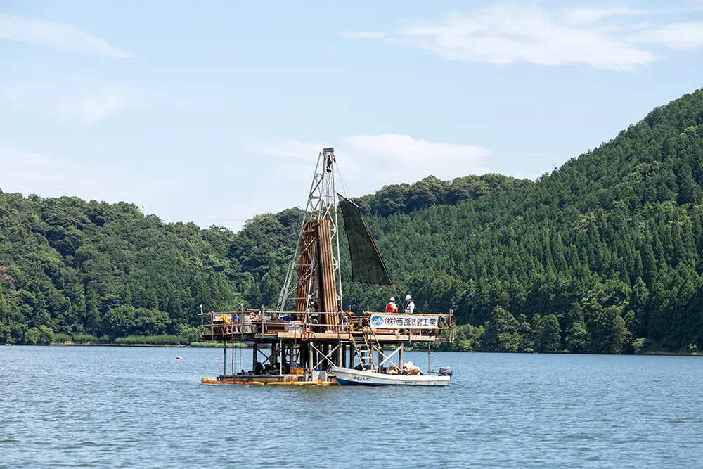 水月湖に年縞が見つかったのは1991年。当時、大学生だった中川さんの指導教官で、国際日本文化研究センター教授の安田喜憲(よしのり)さんらが発見。2年後、それが世界に類例のない45mに及ぶ年縞であることを突きとめるが、採掘した試料にほんのわずかな欠落部分があった。完全な形での採掘に成功するのは2006年。英国ニューカッスル大学にいた中川さんを中心とする国際チームが「リベンジ」を果たした。