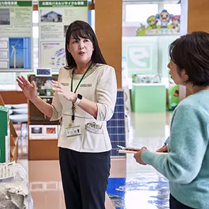 説明してくださったのは、センター長の三根康子さん。エコタウンセンターでは月曜日から土曜日まで、リサイクル工場やエネルギー施設の見学案内をしているという。