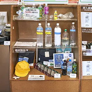 センター内にはリサイクル事業に関する展示物が多数あり、また、風力発電施設など次世代エネルギーについての紹介もされていた。エコと再生可能エネルギー。両方の視点から資源循環型社会について学ぶことができる。