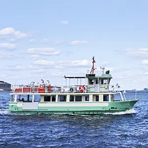 橋のたもとで海面を跳ねる強い光に見惚れていると、対岸から船がやってきた。洞海湾を渡る船は江戸時代からあったというが、令和のいまも若戸渡船として住民の足になっていた。