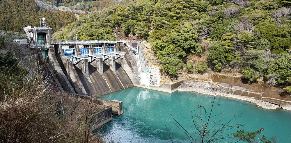 奈半利川には、短い距離の間に急激に標高が下がるという特徴がある。急流なので、雨が降って川の水が増量しても短時間で海へと流れていく。そこでJ-POWERがこの地形を活かして、下流に平鍋ダム、その約8km上流に久木ダム、最上流に魚梁瀬ダムを建設し、降った雨を蓄え、発電に利用した。