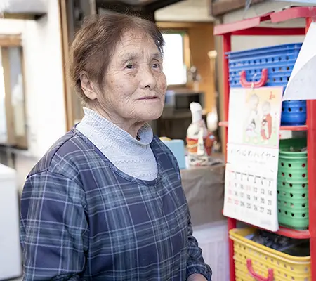 女性は岡島和子さんといい、23歳から82歳の今日までずっと、かんばもちを製造、販売していると話してくださった。