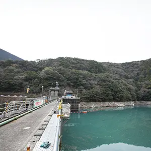 鳥のさえずりしか聞こえない静かな山の中を車で走り、平鍋ダムを目指した。昨年の12月、今年の1月は雨が少なかったそうで、眼下を流れる奈半利川の水量は少ない。それでも青みがかった川の水は美しく、山の緑を川面に映し込んで輝いていた。
