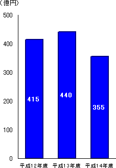 平成12年度末 2兆1,294億円-->平成14年度末 1兆8,957億円(▲2,337億円削減)
