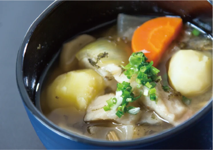 そば粉ともち米粉を練ってゆでた「はっとう」。