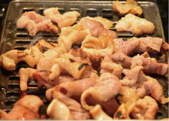 魚沼市のソウルフードとして知られる「もつ焼き」。