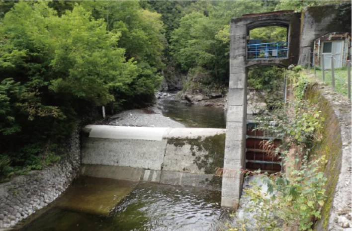 より多くの水を貯められるよう周辺の川をせき止め、流れの一部を引き込むための取水ダム。
