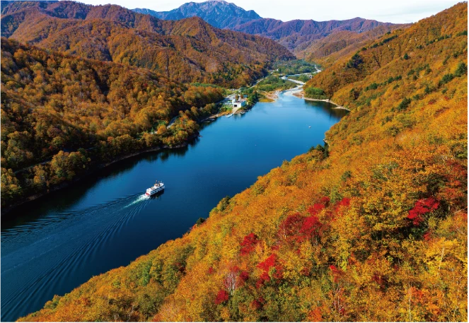 奥只見は越後三山只見国定公園に指定され、手つかずの自然が残されているエリアです。四季折々に美しい絶景が楽しめますが、なかでもおすすめは紅葉の季節。遊覧船から眺める錦繍の山々は息をのむほどの美しさで、リピーターが絶えません。自然とダムが調和する奥只見ならではのダイナミックな景観をぜひ堪能してください。