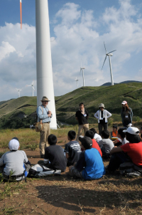 『風の子塾』は、環境活動を積極的に推進していく人材を育成する環境教育活動の一環として開催しています。Jパワーとアサヒビールが阿蘇で取り組む風力発電事業「阿蘇にしはらウィンドファーム」において、風力発電をテーマに、自然エネルギーの理解を通じて豊かな自然環境と地球温暖化防止活動について学習するものです。