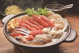 | 北海道産の貝類で作る塩ベースの浜鍋です。 貝から出る旨味たっぷりの出汁で〆のラーメンも絶品です。 |