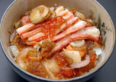 するめとこんぶを醤油ベースで味付けした数の子松前漬にずわいがに、帆立、紅鮭、カレイ、甘エビ、イクラなど様々な海の幸をトッピングしました。 | 鮮度の良いプチプチとしたたらこと、独自の調味液に漬け込んだ辛さ控えめの明太子のセットです。 |