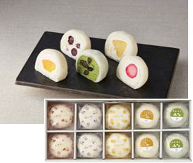 とろける様なお餅になめらかな北海道産の濃厚生クリーム、中心に優しい酸味のフルーツを閉じ込めました。果実のおいしさを自慢の餅と生クリームが引き出します。 ----------------------------------- ■セット内容:生クリームいちご大福・生クリームブルーベリー大福・生クリームパイナップル大福・生クリームマンゴー大福・黒豆抹茶生クリーム大福各65g×2 ■賞味期限:60日(冷凍) |